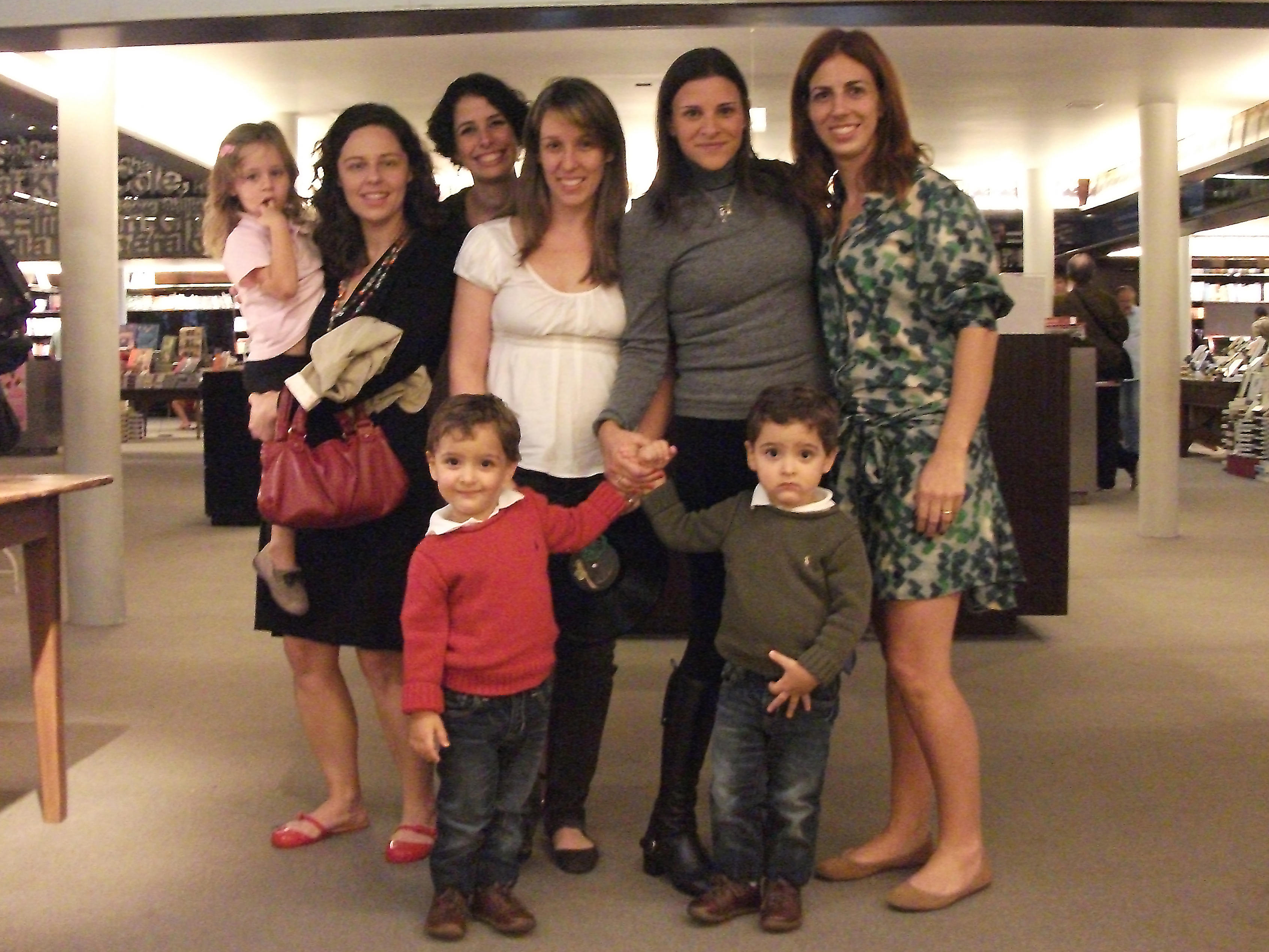 A Priscilla com a filha Lia, a Cynthia, a Renata, a Camila com os gêmeos Pedro e Joaquim e eu!